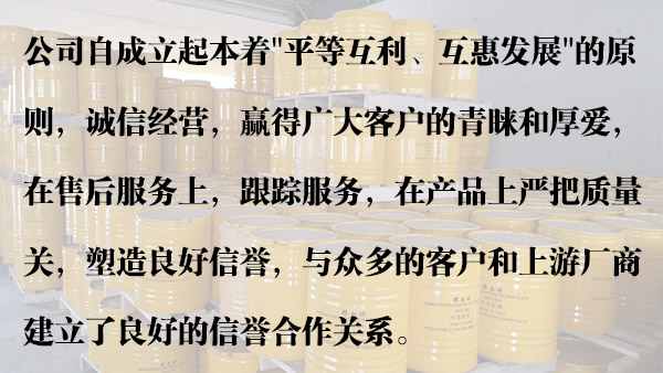 廣東省廣州市寶萬(wàn)化工有限公司總部位于廣州市黃埔區(qū)港前路和安堡大廈,天河區(qū)辦事處(業(yè)務(wù)部)位于華南地區(qū)最大的化工批發(fā)商城—廣州化工城。公司設(shè)有全電子化管理商品配售及優(yōu)秀的業(yè)務(wù)人員,目前在廣東與浙江均擁有獨(dú)立專(zhuān)業(yè)普通化學(xué)品品貨倉(cāng),危險(xiǎn)化學(xué)化品貨倉(cāng)。長(zhǎng)期備有各種基礎(chǔ)化工原料,精細(xì)化工原料商品隨時(shí)提供客戶(hù)直接挑選,可送貨上門(mén)或代辦物流托運(yùn),國(guó)內(nèi)市場(chǎng)客戶(hù)群體覆蓋廣東省、廣西省、湖南省,湖北省、海南省、江西省、福建省、浙江等省。國(guó)外市場(chǎng):泰國(guó)、新加坡、緬甸、尼日利亞、老撾、越南、非洲等國(guó)。公司自成立起本著“平等互利、互惠發(fā)展”的原則,誠(chéng)信經(jīng)營(yíng),贏(yíng)得廣大客戶(hù)的青睞和厚愛(ài),在售后服務(wù)上,跟蹤服務(wù),在產(chǎn)品上嚴(yán)把質(zhì)量關(guān),塑造良好信譽(yù),在較短的時(shí)間內(nèi),就已與眾多的客戶(hù)建立了良好的信譽(yù)合作關(guān)系,我們的目的就是打造“一站式采購(gòu)”,方便廣大客戶(hù)!