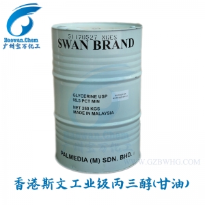 1.無(wú)色、透明、無(wú)臭、粘稠液體,味甜,具有吸濕性。 與水和醇類、胺類、酚類以任何比例混溶,水溶液為中性。溶于11倍的乙酸乙酯,約500倍的乙醚。不溶于苯、氯仿、四氯化碳、二硫化碳、石油醚、油類、長(zhǎng)鏈脂肪醇??扇?,遇二氧化鉻、氯酸鉀等強(qiáng)氧化劑能引起燃燒和爆炸。也是許多無(wú)機(jī)鹽類和氣體的良好溶劑。對(duì)金屬無(wú)腐蝕性,作溶劑使用時(shí)可被氧化成丙烯醛。化學(xué)性質(zhì):與酸發(fā)生酯化反應(yīng),如與苯二甲酸酯化生成醇酸樹脂。與酯發(fā)生酯交換反應(yīng)。與氯化氫反應(yīng)生成氯代醇。甘油脫水有兩種方式:分子間脫水得到二甘油和聚甘油;分子內(nèi)脫水得到丙烯醛。甘油與堿反應(yīng)生成醇化物。與醛、酮反應(yīng)生成縮醛與縮酮。用稀硝酸氧化生成甘油醛和二羥基丙酮;用高碘酸氧化生成甲酸和甲醛。與強(qiáng)氧化劑如鉻酸酐、氯酸鉀或高錳酸鉀接觸,能引起燃燒或爆炸。甘油也能起硝化和乙酰化等作用。