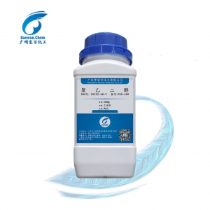 依相對(duì)分子質(zhì)量不同而性質(zhì)不同,從無色無臭黏稠液體至蠟狀固體。分子量200~600者常溫下是液體,分子量在600以上者就逐漸變?yōu)榘牍腆w狀,隨著平均分子量的不同,性質(zhì)也有差異。從無色無臭粘稠液體至蠟狀固體。隨著分子量的增大,其吸濕能力相應(yīng)降低。本品溶于水、乙醇和許多其它有機(jī)溶劑。蒸氣壓低,對(duì)熱、酸、堿穩(wěn)定。與許多化學(xué)品不起作用。有良好的吸濕性、潤滑性、粘結(jié)性。無毒,無刺激。平均分子量300,n=5~5.75,熔點(diǎn)-15~8℃,相對(duì)密度1.124~1.130。平均分子量600,n=12~13,熔點(diǎn)20 ~25℃,閃點(diǎn)246℃,相對(duì)密度1.13 (20℃)。平均分子量4000,n=70~85,熔點(diǎn)53~ 56℃。
