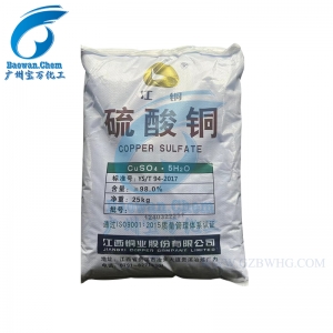 硫酸銅是藍(lán)色三斜晶系結(jié)晶,外觀亮籃色,粒度均勻,流動(dòng)性好,溶于水,25℃時(shí)水中溶解度為23.05g,溶于稀乙醇,不溶于無(wú)水乙醇、乙醚、液氨。硫酸銅加熱至110℃失去四分子結(jié)晶水,250℃失去全部結(jié)晶水。650℃分解成氧化銅和三氧化硫。[1]
