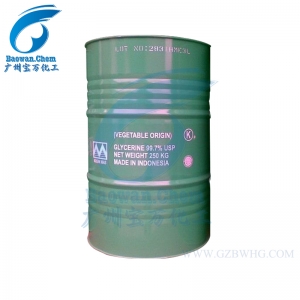 1.無色、透明、無臭、粘稠液體,味甜,具有吸濕性。 與水和醇類、胺類、酚類以任何比例混溶,水溶液為中性。溶于11倍的乙酸乙酯,約500倍的乙醚。不溶于苯、氯仿、四氯化碳、二硫化碳、石油醚、油類、長鏈脂肪醇。可燃,遇二氧化鉻、氯酸鉀等強(qiáng)氧化劑能引起燃燒和爆炸。也是許多無機(jī)鹽類和氣體的良好溶劑。對金屬無腐蝕性,作溶劑使用時可被氧化成丙烯醛。化學(xué)性質(zhì):與酸發(fā)生酯化反應(yīng),如與苯二甲酸酯化生成醇酸樹脂。與酯發(fā)生酯交換反應(yīng)。與氯化氫反應(yīng)生成氯代醇。甘油脫水有兩種方式:分子間脫水得到二甘油和聚甘油;分子內(nèi)脫水得到丙烯醛。甘油與堿反應(yīng)生成醇化物。與醛、酮反應(yīng)生成縮醛與縮酮。用稀硝酸氧化生成甘油醛和二羥基丙酮;用高碘酸氧化生成甲酸和甲醛。與強(qiáng)氧化劑如鉻酸酐、氯酸鉀或高錳酸鉀接觸,能引起燃燒或爆炸。甘油也能起硝化和乙酰化等作用。