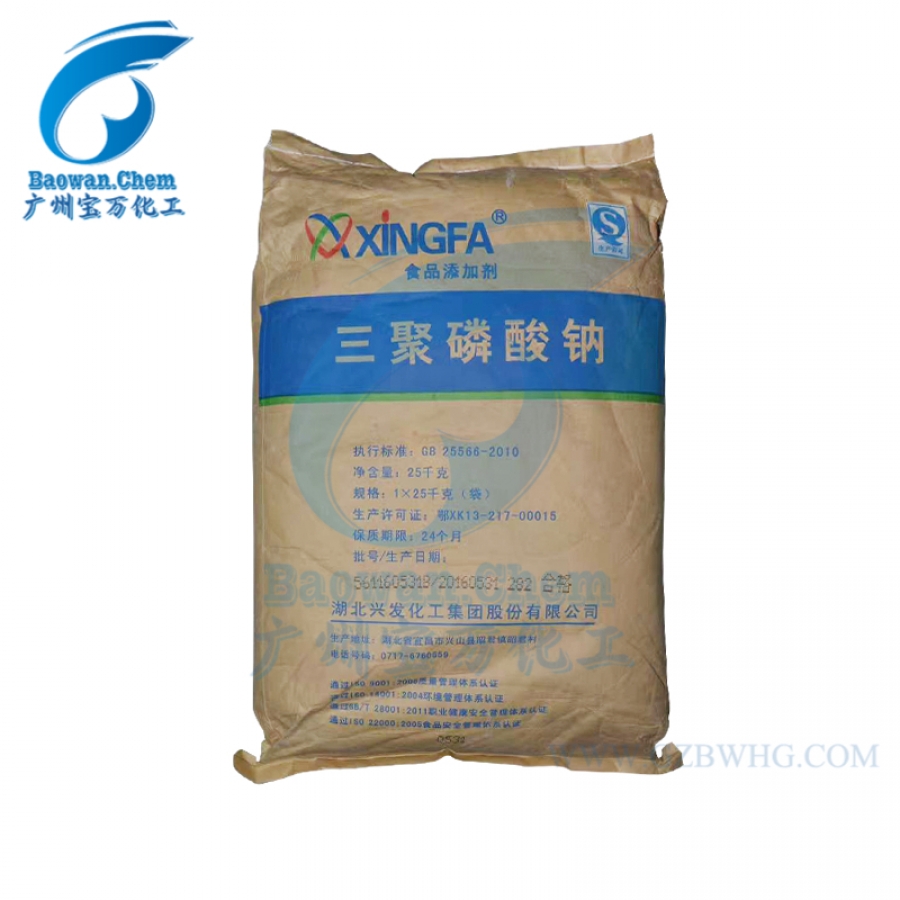 三聚磷酸鈉(sodium tripolyphosphate)分類代碼 GBl5.003,INS451(i)。化學(xué)結(jié)構(gòu):本品為一類無定形水溶性線狀聚磷酸鹽,兩端以Na2 PO4終止,化學(xué)式Na5P3 O10,相對(duì)分子質(zhì)量367.86。常用于食品中,作水分保持劑、品質(zhì)改良劑、pH調(diào)節(jié)劑、金屬螯合劑[1] 。
