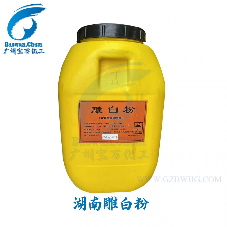 又稱雕白粉,系以福爾馬林結(jié)合亞硫酸氫鈉再還原制得,化學(xué)名稱為次硫酸氫鈉甲醛或甲醛合次硫酸氫鈉,分子式為NaHS02·CH20·2H20。呈白色塊狀或結(jié)晶性粉狀,易溶于水。常溫時較為穩(wěn)定,高溫下具有極強的還原性,有漂白作用。遇酸即分解,其水溶液在60℃以上就開始分解出有害物質(zhì),120℃下分解產(chǎn)生甲醛、二氧化硫和硫化氫等有毒氣體 。