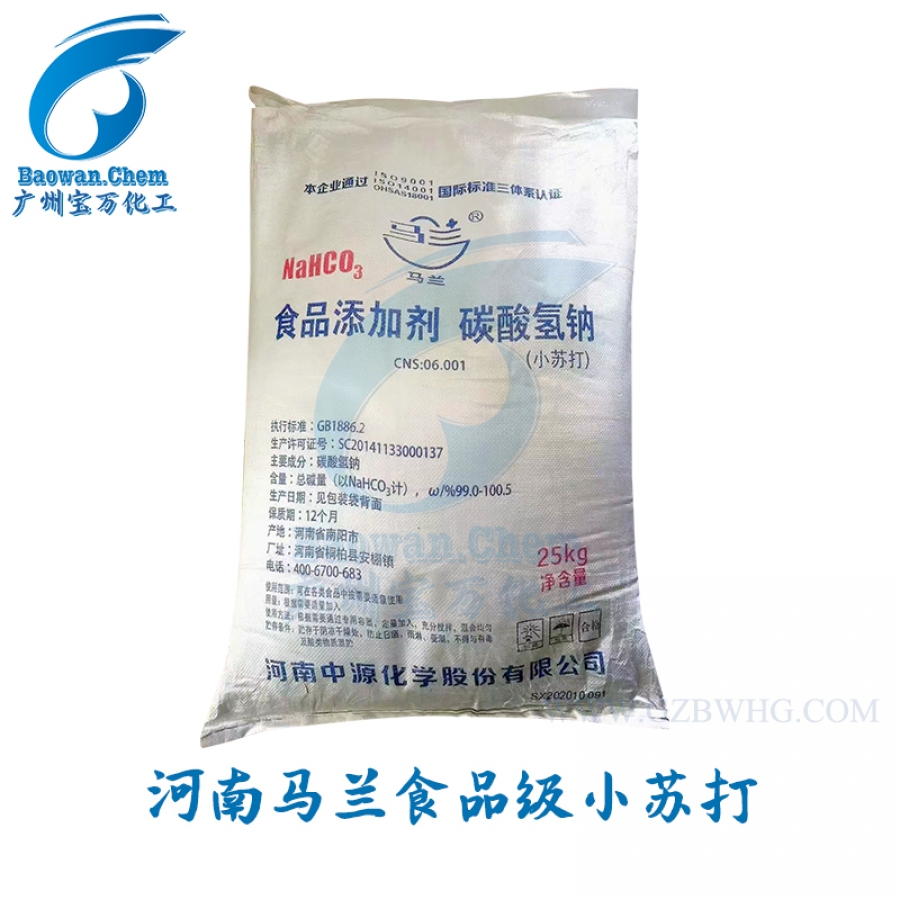 碳酸氫鈉可直接作為制藥工業(yè)的原料,用于治療胃酸過(guò)多。還可用于電影制片、鞣革、選礦、冶煉、金屬熱處理,以及用于纖維、橡膠工業(yè)等。同時(shí)用作羊毛的洗滌劑,以及用于農(nóng)業(yè)浸種等。 食品工業(yè)中一種應(yīng)用最廣泛的疏松劑,用于生產(chǎn)餅干、糕點(diǎn)、饅頭、面包等,是汽水飲料中二氧化碳的發(fā)生劑;可與明礬復(fù)合為堿性發(fā)酵粉,也可與純堿復(fù)合為民用石堿;還可用作黃油保存劑。消防器材中用于生產(chǎn)酸堿滅火器和泡沫滅火器。橡膠工業(yè)利用其與明礬、碳酸氫鈉發(fā)孔劑配合起均勻發(fā)孔的作用用于橡膠、海棉生產(chǎn)。冶金工業(yè)用作澆鑄鋼錠的助熔劑。機(jī)械工業(yè)用作鑄鋼(翻砂)砂型的成型助劑。印染工業(yè)用作染色印花的固色劑,酸堿緩沖劑,織物染整的后方處理劑。染色中加入小蘇打可以防止紗筒產(chǎn)生色花。醫(yī)藥工業(yè)用作制酸劑的原料。用作分析試劑、無(wú)機(jī)合成、制藥工業(yè)、治療酸血癥以及食品工業(yè)的發(fā)酵劑、汽水和冷飲中二氧化碳的發(fā)生劑、黃油的保存劑。可直接用作制藥工業(yè)的原料、作羊毛的洗滌劑、泡沫滅火劑、浴用劑、堿性劑、膨松劑。常與碳酸氫銨配制膨松劑用于餅干、糕點(diǎn)。在小麥粉中的添加量20g/kg。可與檸檬酸、酒石酸等配制固體清涼飲料的發(fā)泡劑(產(chǎn)生CO?)。因系無(wú)害的弱堿性劑,洗滌蔬菜時(shí)添加約0.1%~0.2%可使綠色穩(wěn)定。單用時(shí),因受熱分解呈強(qiáng)堿性,用于面包時(shí)會(huì)帶黃色,并破壞小麥中維生素,最好與磷酸氫鈣等酸性物質(zhì)合用。尚可用于食品燙漂、去澀味。因其能使pH值上升,故可提高蛋白質(zhì)的持水性,促使食品組織細(xì)胞軟化,促進(jìn)澀味成分溶出。對(duì)羊奶有去膻作用(用量10~20mg/kg)。作酸度調(diào)節(jié)劑和化學(xué)膨松劑,我國(guó)規(guī)定可用于各類(lèi)需添加膨松劑的食品,按生產(chǎn)需要適量使用。??